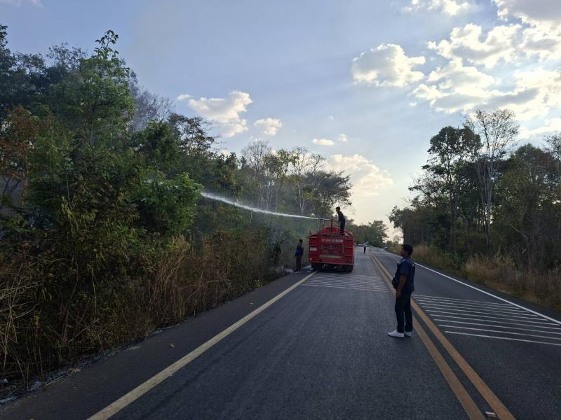 องค์การบริหารส่วนตำบลหนามแท่ง โดยงานป้องกันและบรรเทาสาธารณภัยลงพื้นที่ดับไฟป่าในพื้นที่ตำบลหนามแท่ง